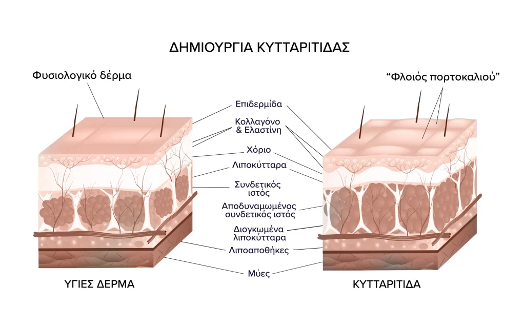 - Τρόπος Ζωής: Καθιστική ζωή, κακή διατροφή και κάπνισμα συμβάλλουν στην εμφάνιση της κυτταρίτιδας.